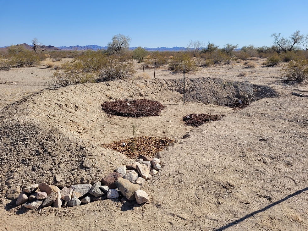 This April visit to Sleepy Mesquite turned out to be one of the most intense and revealing trips I’ve had out there so far. What was supposed to be a fairly straightforward maintenance run—water the trees, shore up earthworks, add mulch, and slowly keep nudging this dryland system toward resilience—ended up confronting me with two very different but related realities: the harshness of the heat, and the harshness of human impact on the land.